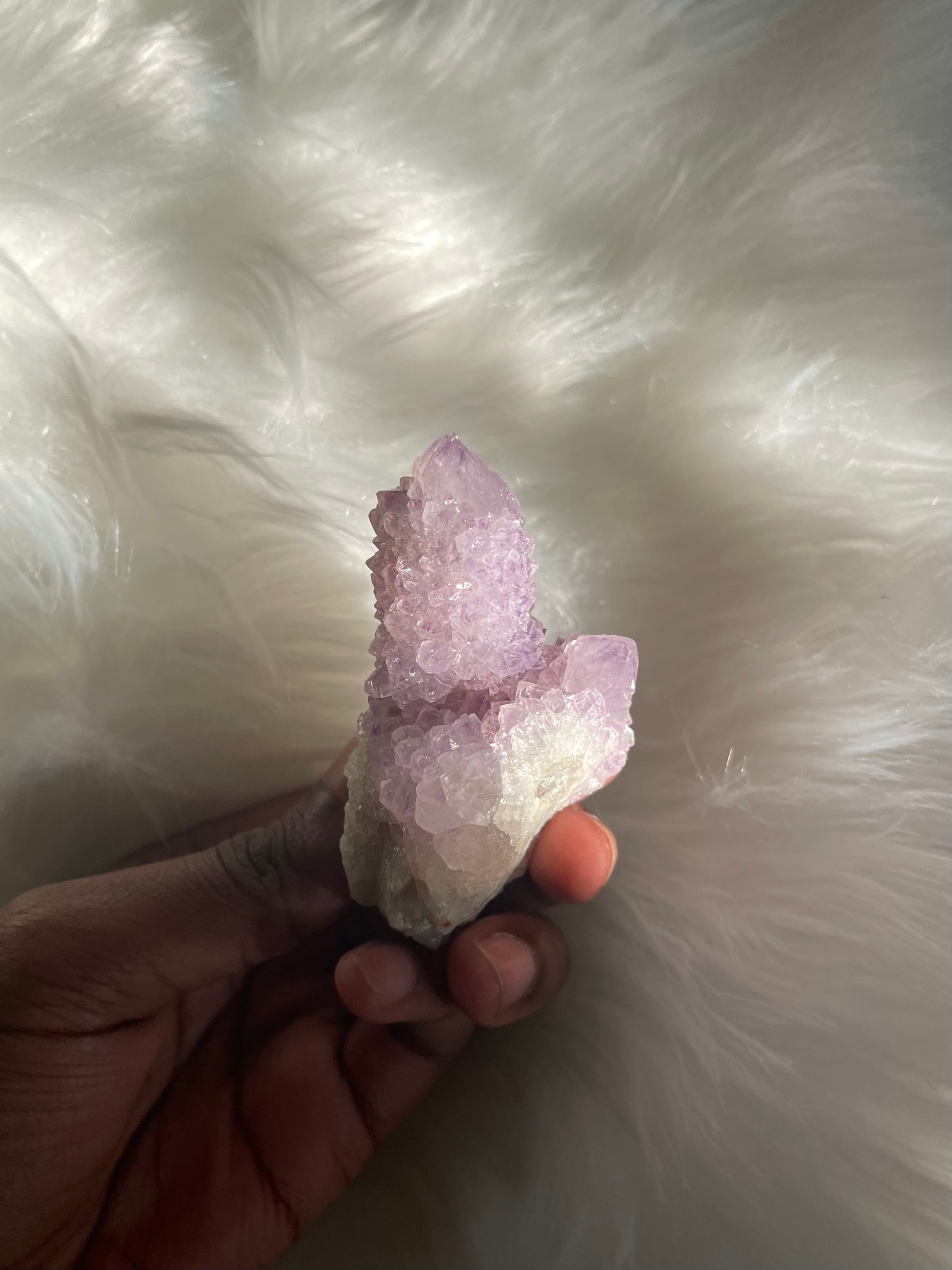 Beautiful Amethyst Spirit Quartz. Spirit Quartz is a special variety of the Quartz family due to its unusual shape. It is a gorgeous crystal that glitters even under low light!