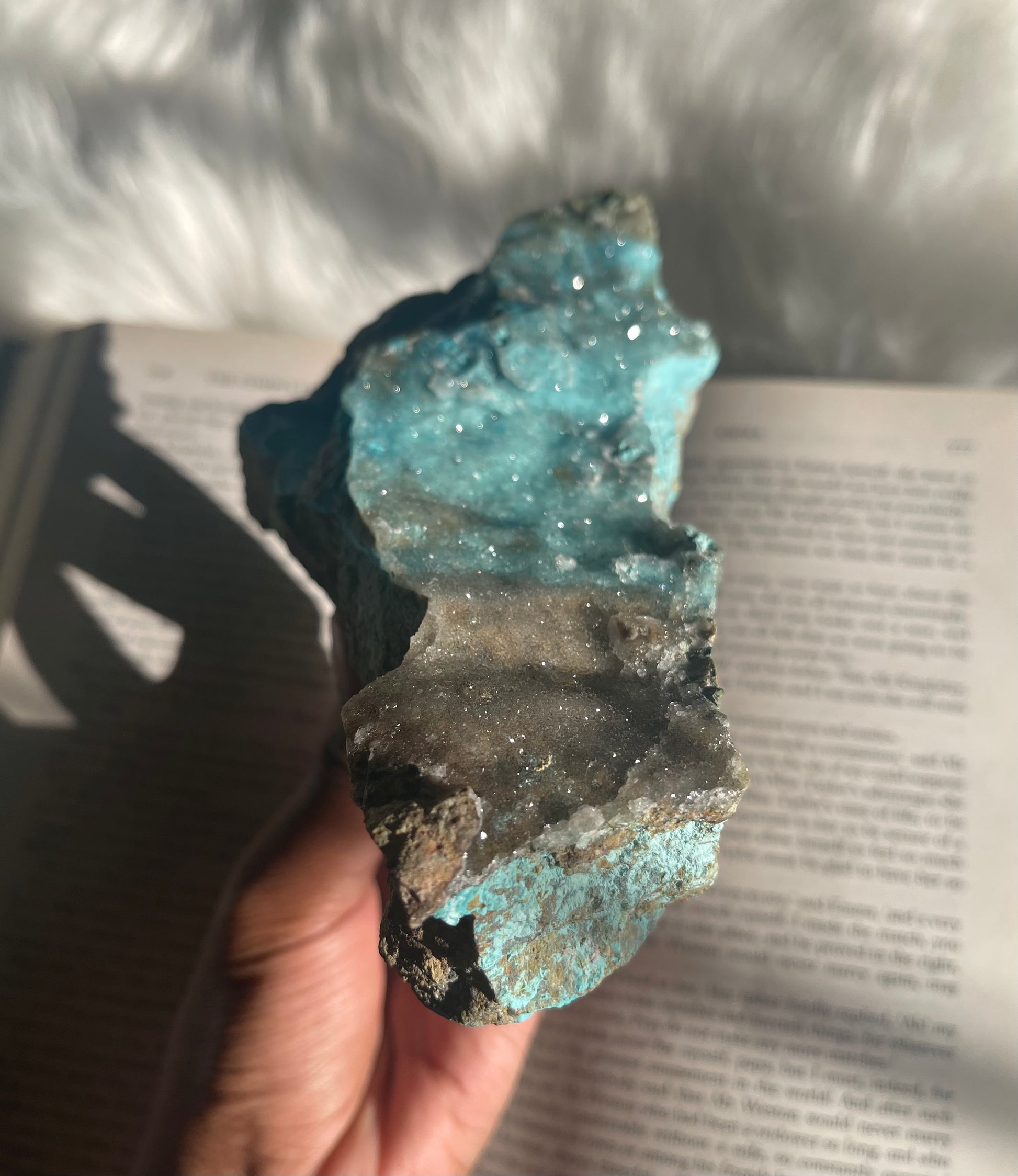 Exceptionally rare piece! Chrysocolla connects to your heart and throat chakra, it encourages peaceful self expression. Chrysocolla embodies feminine energy and will behave in a maternal way, it soothes you when stressed, brings emotional healing and will help alleviate fear.