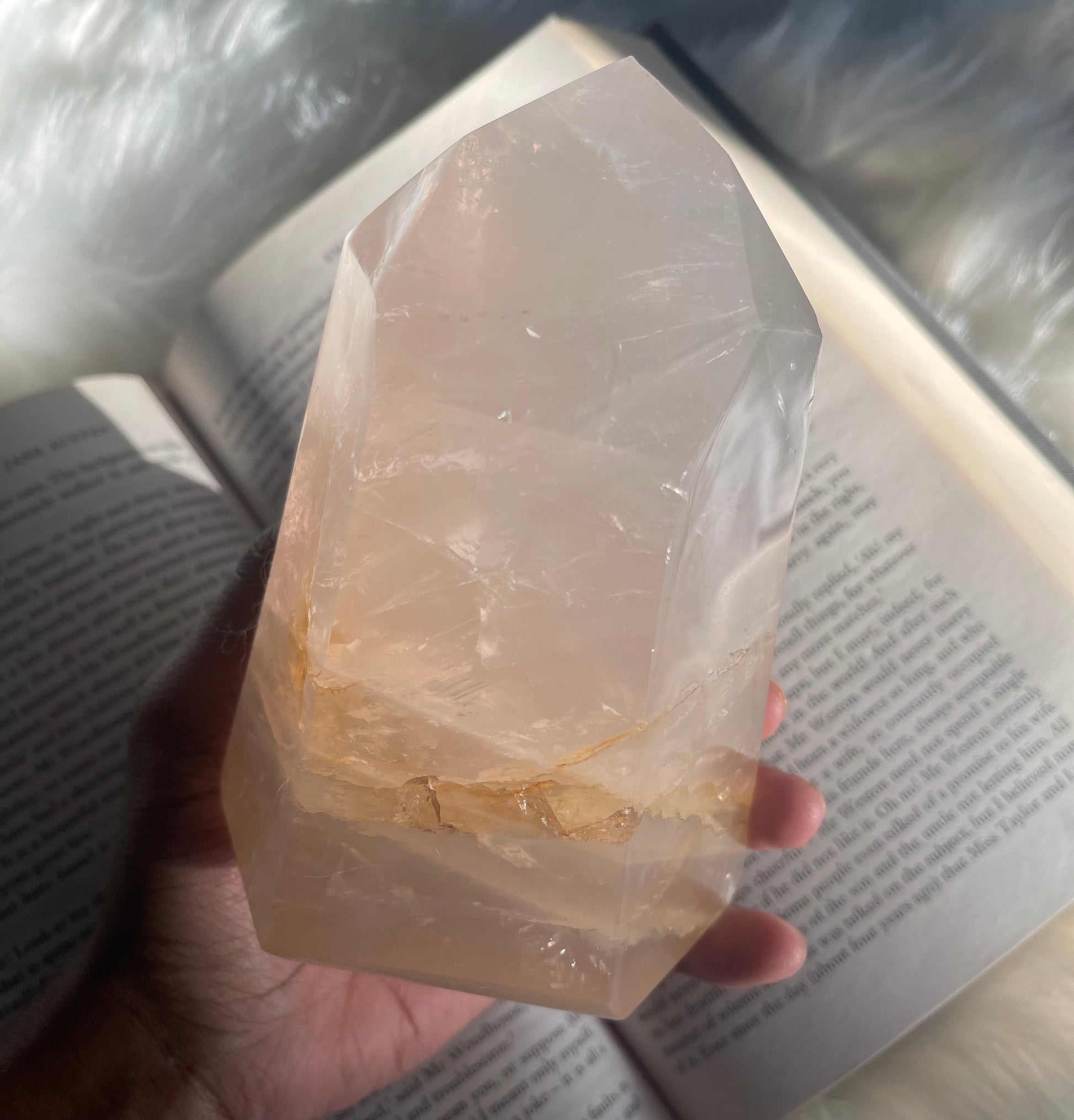 Girasol Quartz is a milky/pale pink member of the Quartz family found in Madagascar. Girasol Quartz gets it’s name from the Italian word Girasol which means “turn towards the sun or sunflower”, this beautifully represents how Girasol Quartz glows when touched by light!