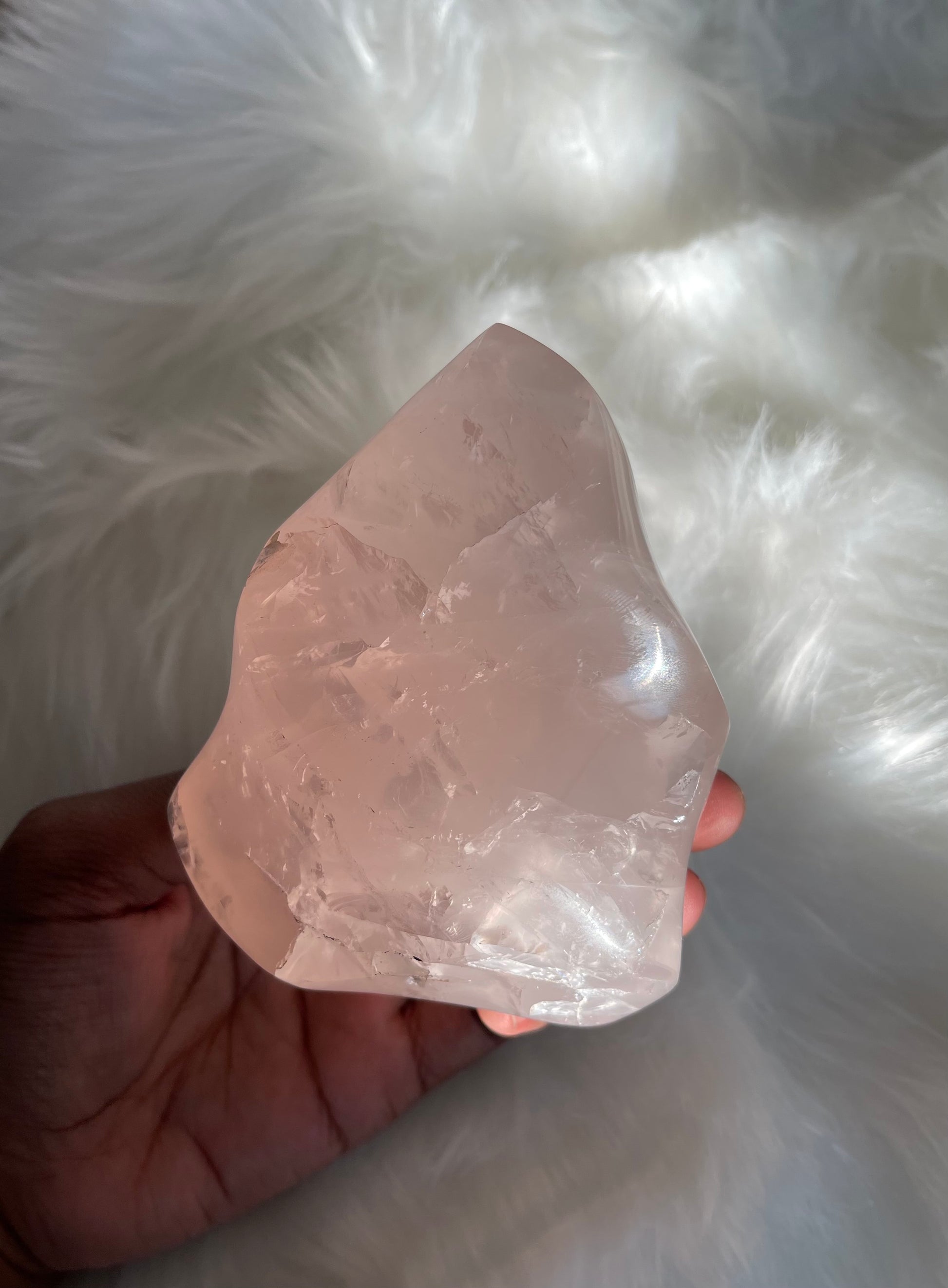 Gemmy quality polished Rose Quartz. Rose Quartz is a well known ‘love stone’, directly and continuously working to open the heart chakra and allow space to usher in unconditional love. The love rose quartz cultivates is a universal love not exclusively for romantic partners but love which extends to family, pets and above all, self love.