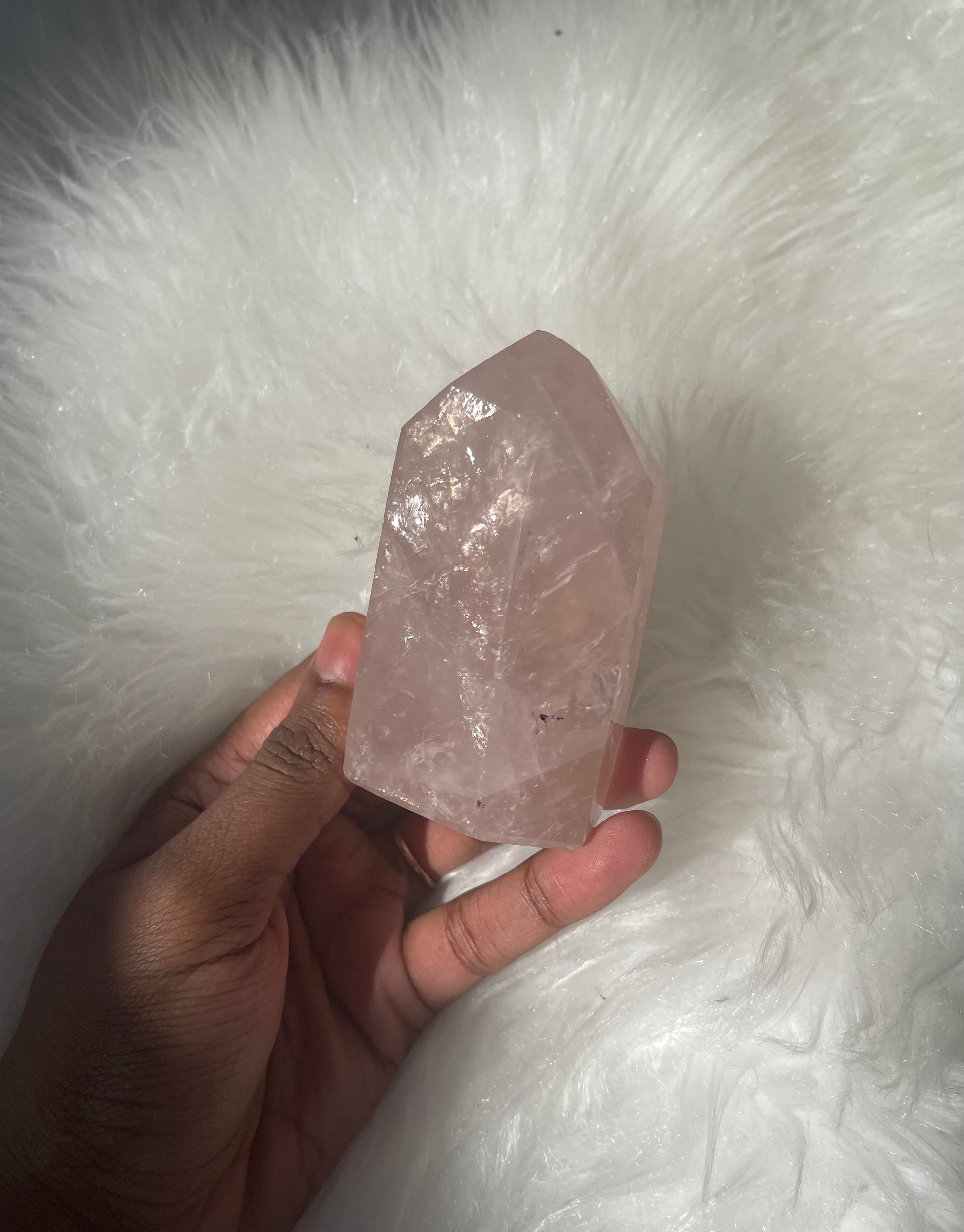 Rose Quartz is a well known ‘love stone’, directly and continuously working to open the heart chakra and allow space to usher in unconditional love. The love rose quartz cultivates is a universal love not exclusively for romantic partners but love which extends to family, pets and above all, self love.