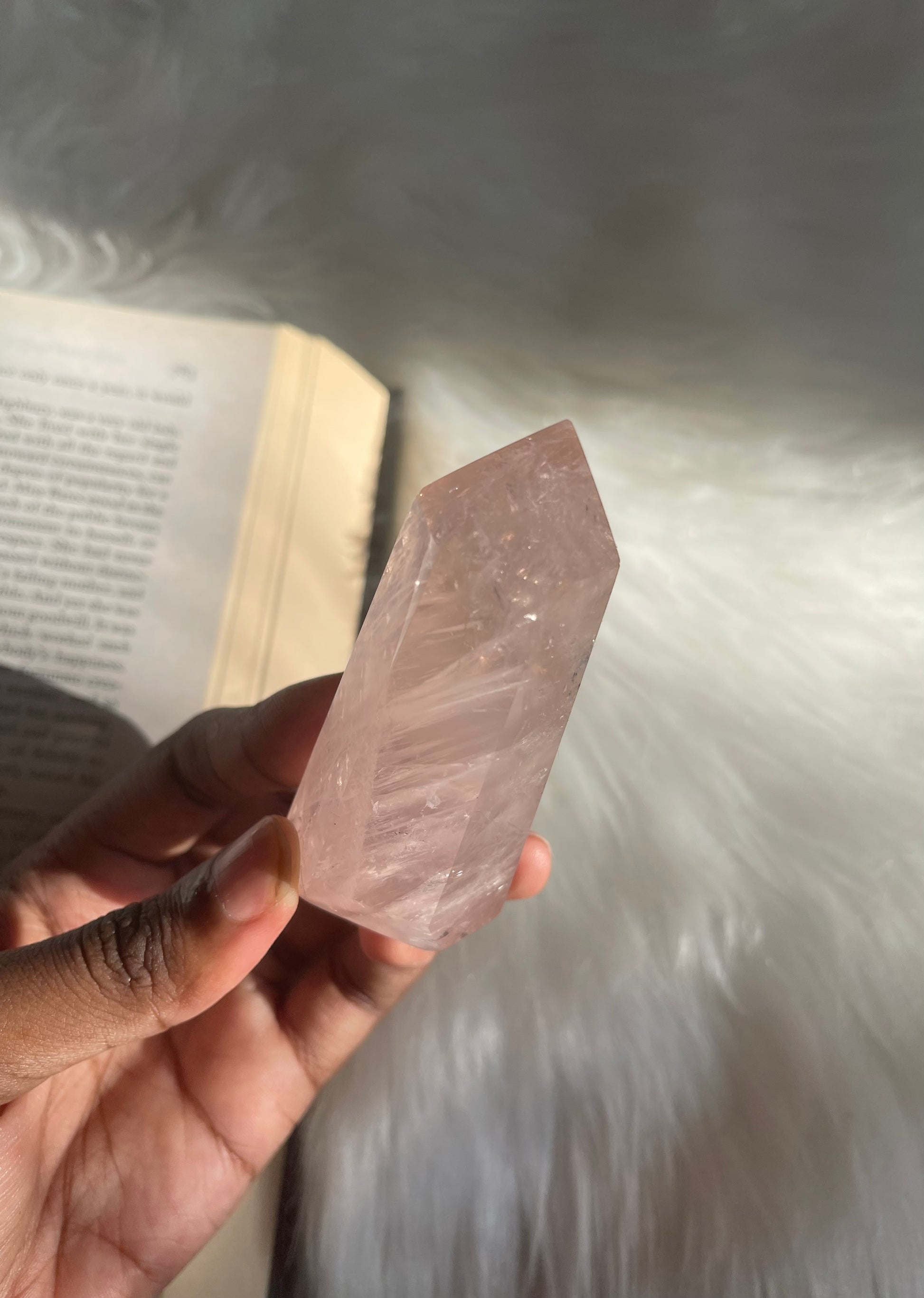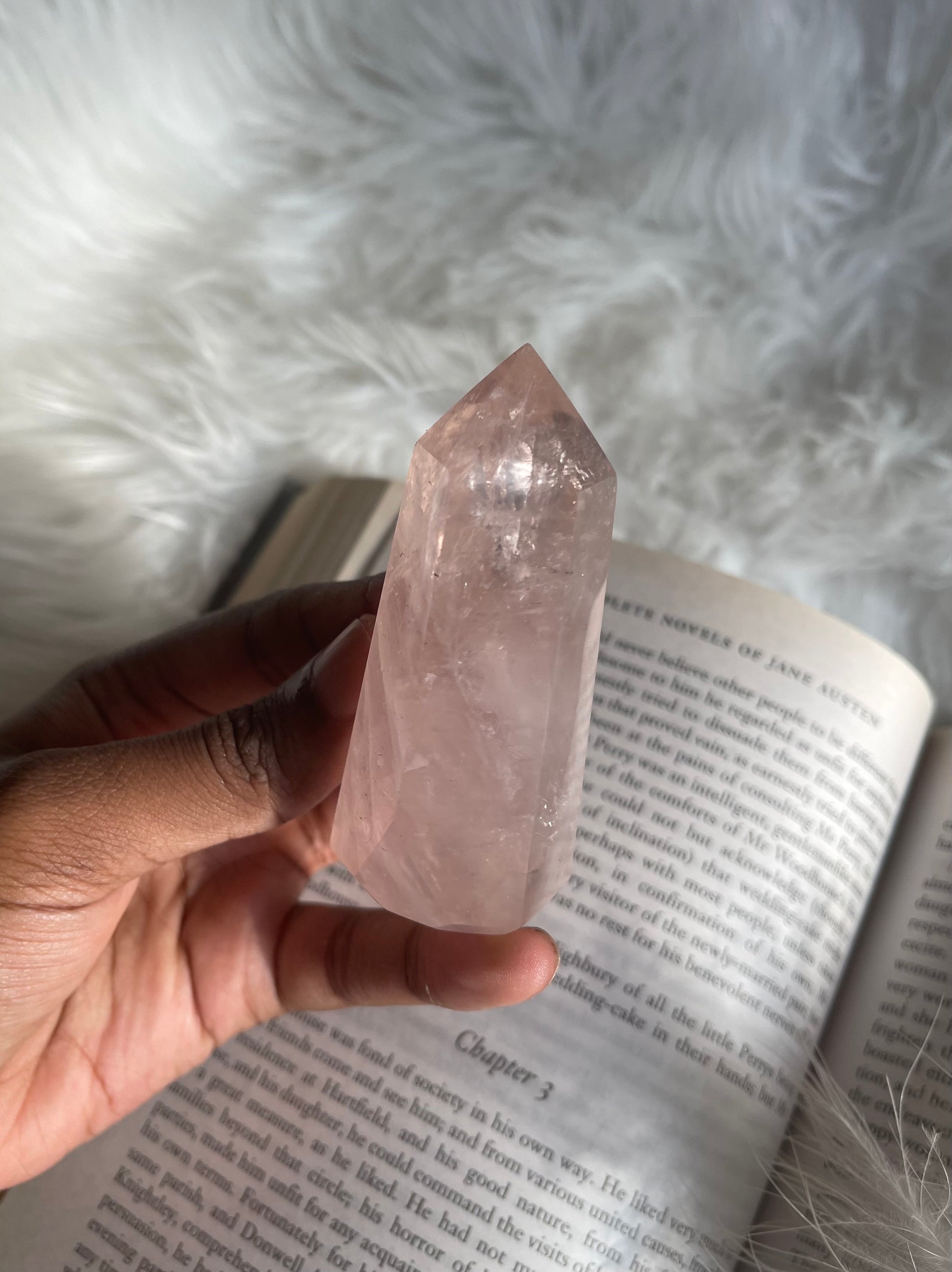 Rose Quartz is a well known ‘love stone’, directly and continuously working to open the heart chakra and allow space to usher in unconditional love. The love rose quartz cultivates is a universal love not exclusively for romantic partners but love which extends to family, pets and above all, self love.